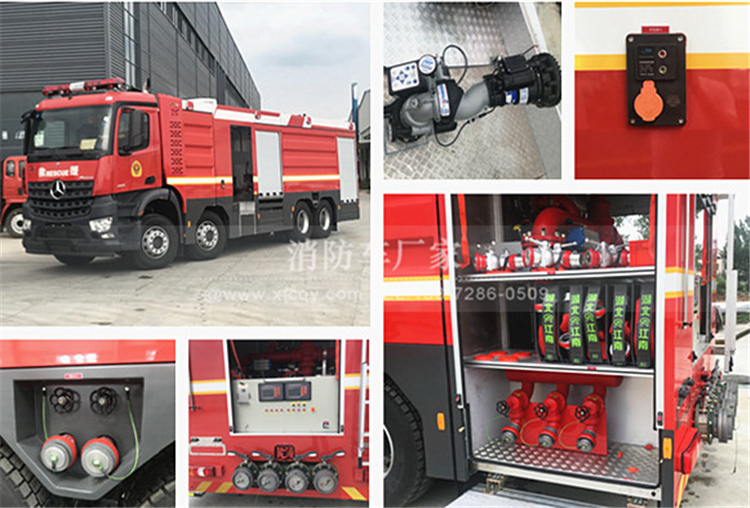 奔馳消防車注水:檢查軸承箱及油位→關閉余水旋塞及閥門→打開真空泵→打開引水閥,即可向水罐注水;使用消防栓中的水時,用水帶將消防栓與水罐外注水接口相連,水直接注入水罐中消防車出水:打開后進水蝶閥,啟動消防泵→1.消防泵工作后,打開低壓出水球閥即可實現低壓出水2.低壓工作時,關閉低壓出水球閥,打開炮球閥,可實現炮出水滅火→消防車水泵使用完→放掉泵內余水關閉開關以利防凍。