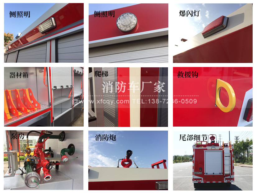 駕駛室頂部前端為長(zhǎng)排警燈,車身后配有24V/60W火場(chǎng)照明燈一只,車輛兩側(cè)上方各配有紅藍(lán)相配的爆閃燈,下方安裝安全標(biāo)志燈,乘員室、器材箱、 泵房?jī)?nèi)均裝有照明燈,加裝有100W警報(bào)器,回轉(zhuǎn)警燈開關(guān)、通訊設(shè)備預(yù)備接口。